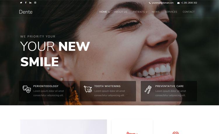 Dente – Free Bootstrap 4 HTML5 dental website template