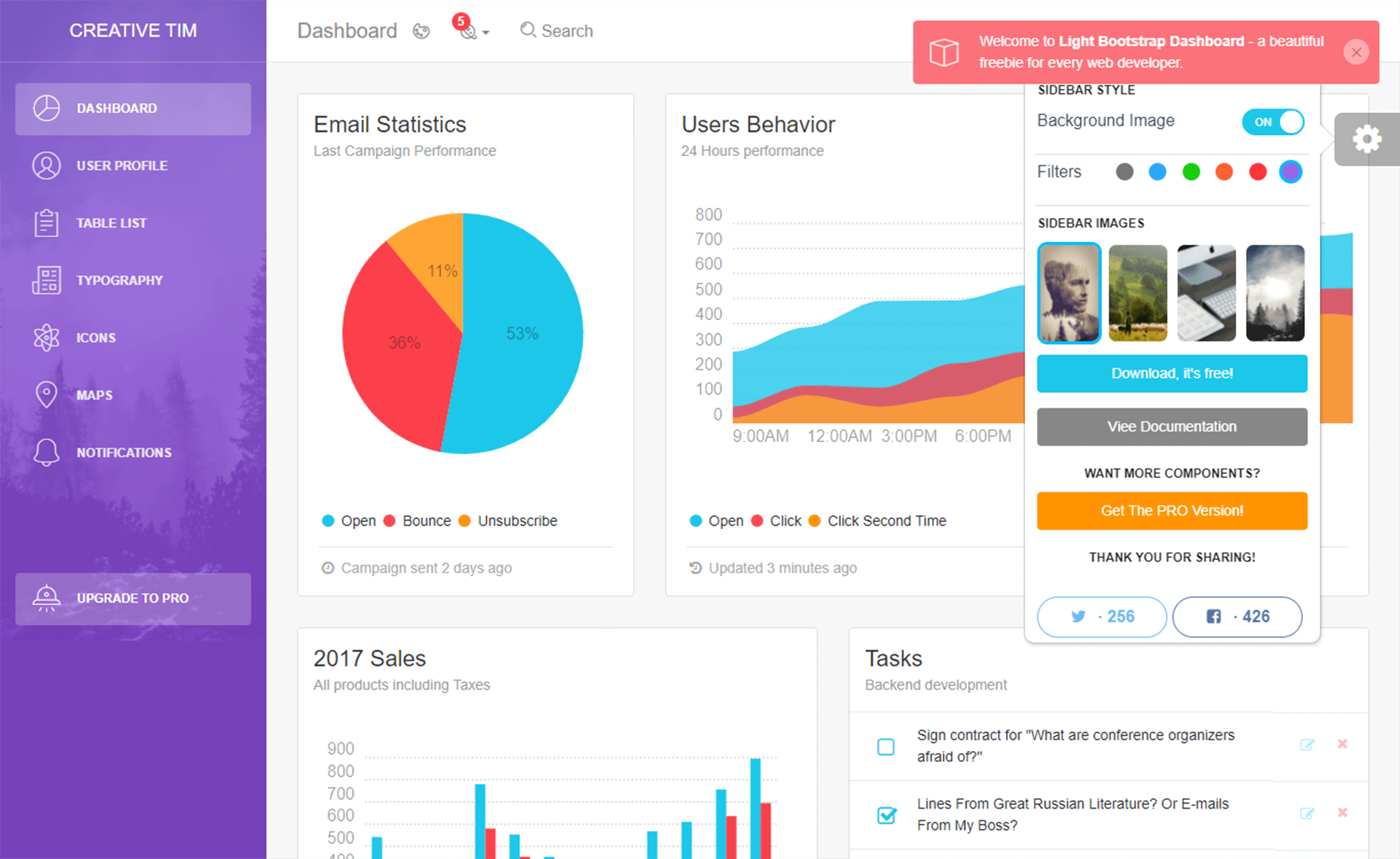 Light Bootstrap Dashboard – Free Bootstrap 4 HTML5 admin dashboard template