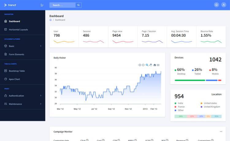 Next Angular 8 – Free Responsive HTML5 Admin Dashboard Template