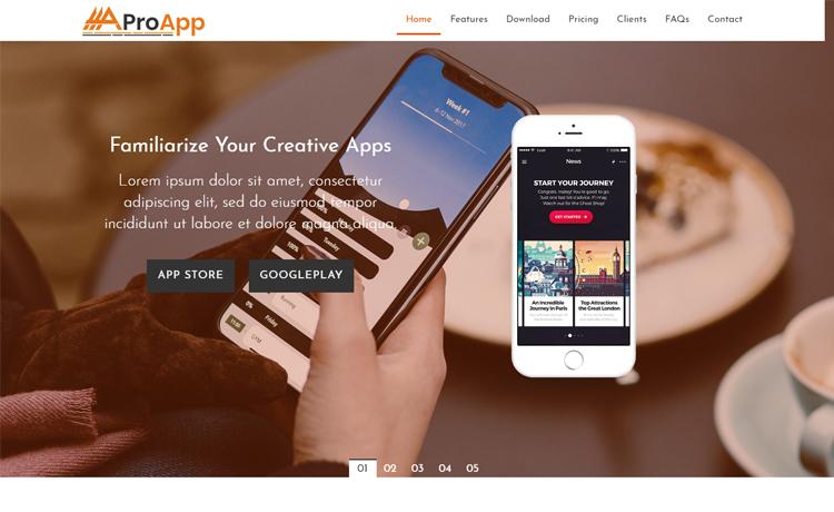 ProApp – Free Bootstrap 4 HTML5 one-page app landing page template