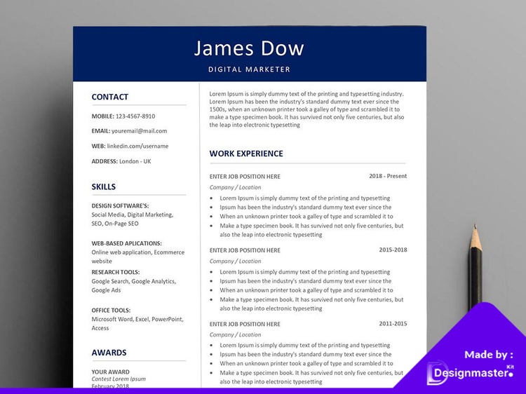 Description : Explorez un monde de possibilités avec ce modèle de CV créatif. Personnalisez-le pour correspondre à votre style et votre expérience. Téléchargez ce CV unique et soyez prêt à impressionner les recruteurs.