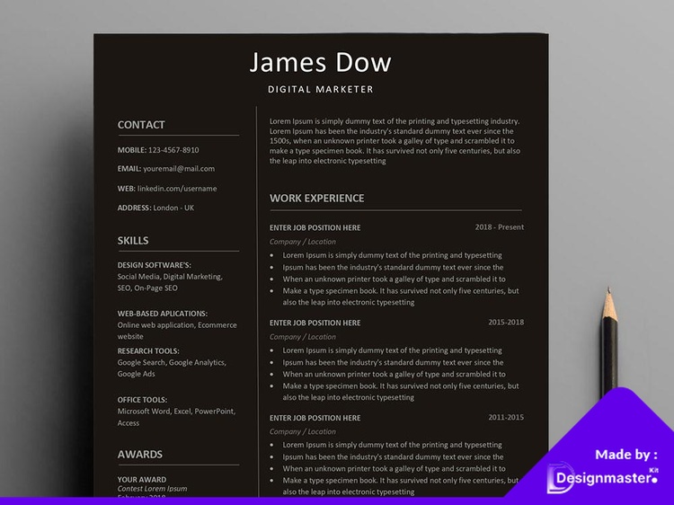 Description : Explorez un monde de possibilités avec ce modèle de CV créatif. Personnalisez-le pour correspondre à votre style et votre expérience. Téléchargez ce CV unique et soyez prêt à impressionner les recruteurs.