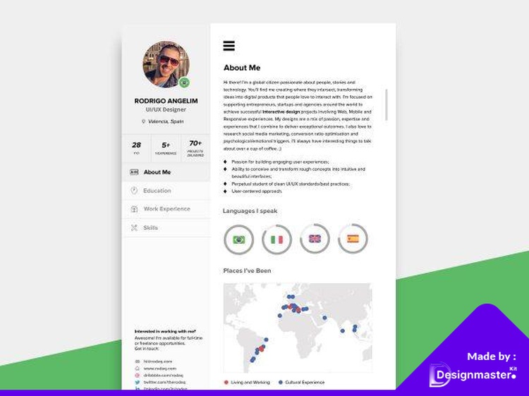 Description : Explorez un monde de possibilités avec ce modèle de CV créatif. Personnalisez-le pour correspondre à votre style et votre expérience. Téléchargez ce CV unique et soyez prêt à impressionner les recruteurs.