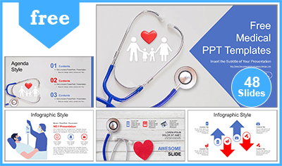 This template is a stethoscope and a happy family icon concept design. This is perfect for presentations on family health care, medical insurance, and life insurance. It is free form-