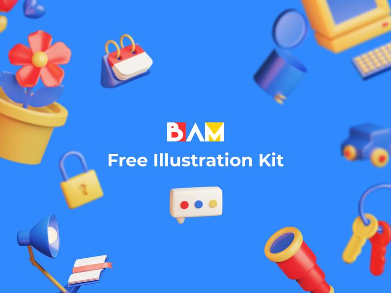 A good illustration sometimes worth a thousand words, that's why at @BAM, we use lots of illustrations in the UI we carefully crafted. Inspired by the lovely 3D works by Things and Saly, we decided to create a set of most-used icons in Blender. The main idea behind this is to bring a modern and colorful touch to our UI and presentations. Now we'd like to put our illustrations into your dispositions, you can use them for any commercial and personal use, our only condition is that you can't resell them as your creation and you keep our name in your credit.