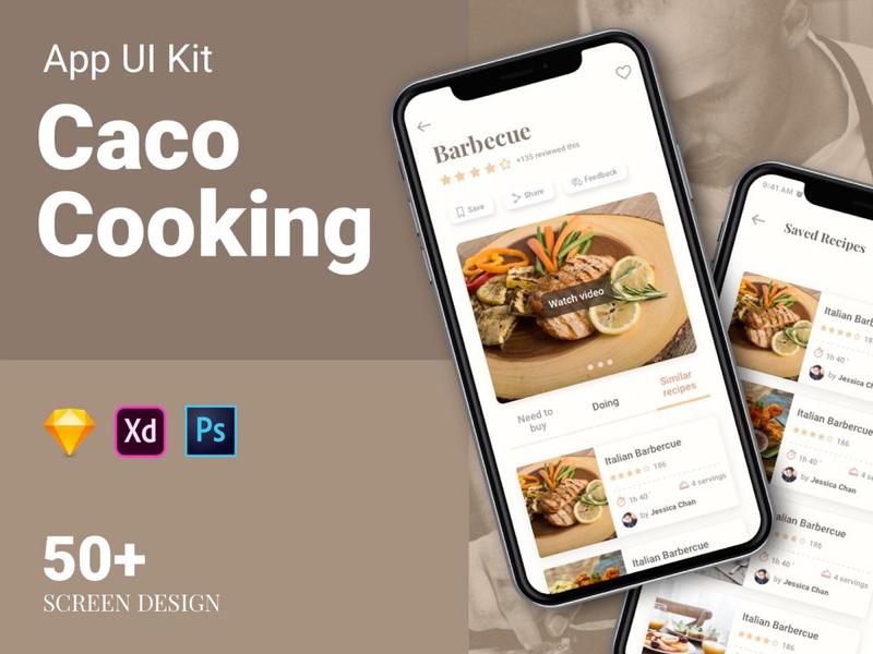 Caco is a UI Kit for Cooking guide Application, able to inspire anyone and involve into a highly-productive cooperation. Vector shapes let the expressiveness out and focus all eyes on it. Working in Photoshop, Sketch and Adobe XD. The Caco UI kit is great for Cooking guide Application and any creative applications about cooking, pursuing the aim to strike their audience with a powerful flow of colors.