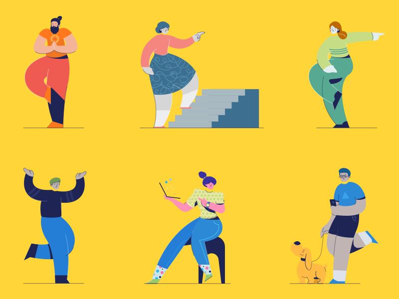 Free simple illustration scene builder offering a collection of characters and environment objects all drawn in flat style. Combine these beautifully drawn people together with some of the background elements to create inspiring scenes for website interface or application screens.