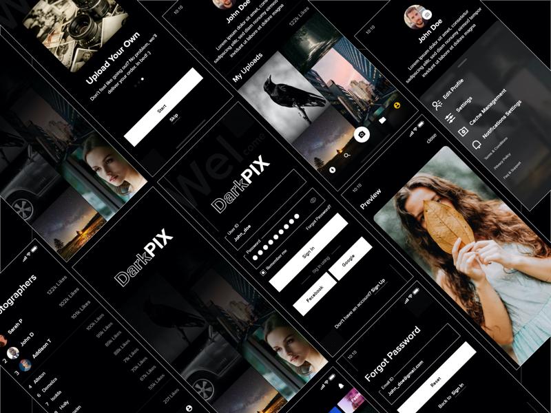 DarkPIX UI kit designed for Photography, Free Stock Images and HD wallpaper apps. Package includes 20+ Screen Adobe XD files. Free editable showcase mock-ups included for Presentation.
