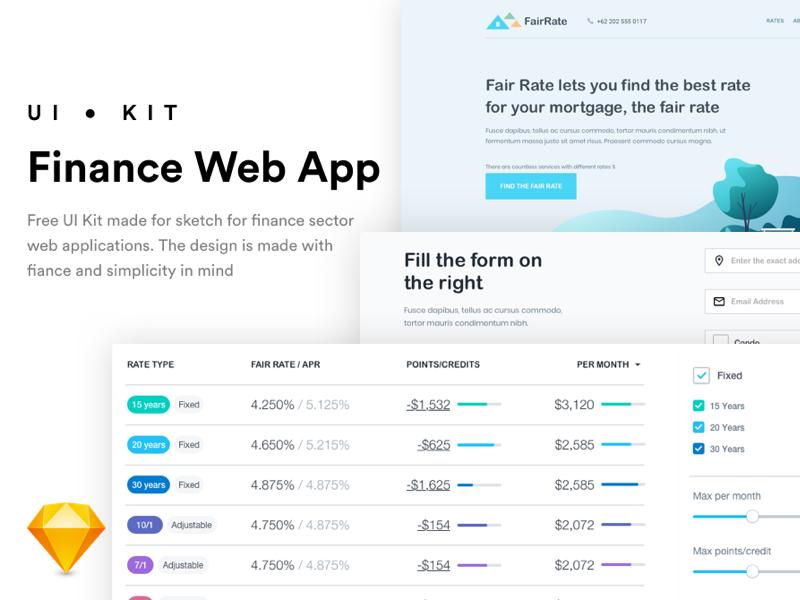 Free UI Kit made for Sketch for finance sector web applications. The design is made with fiance and simplicity in mind.