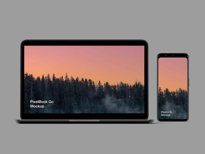 Meet high resolution PixelBook Go and Pixel XL 4 mockups in black color.