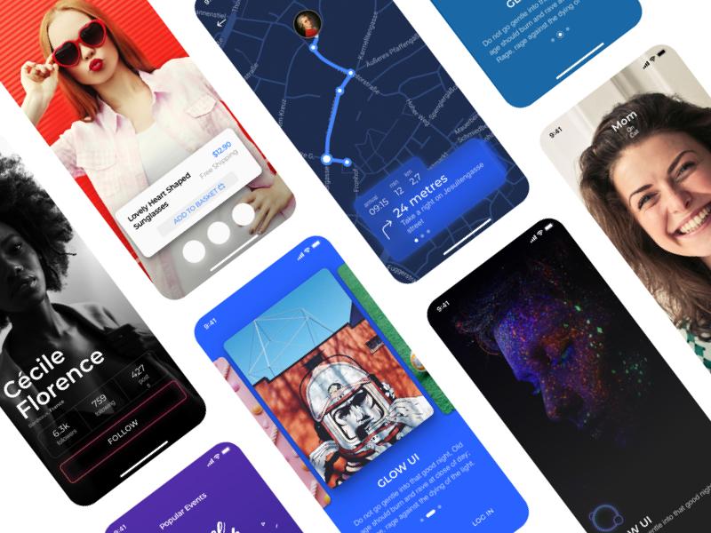 Glow's atomic structure provides you easily customize. Kit includes 60+ vector based design elements and 6 categories: Sign Up & Sign In, Walkthroughs, Navigation, Social, Magazine, Shopping. Glow UI Kit is free!