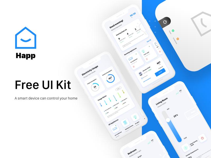 Free UI Kit includes dashboard, usage graph, device control, add device, timer, etc