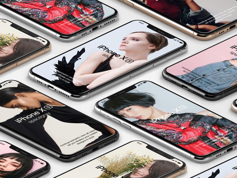 This is a perspective psd iPhone XS mockup isometric set to showcase your designs with all the iPhone XS psd colors. Easily add your own graphics with the smart layers.