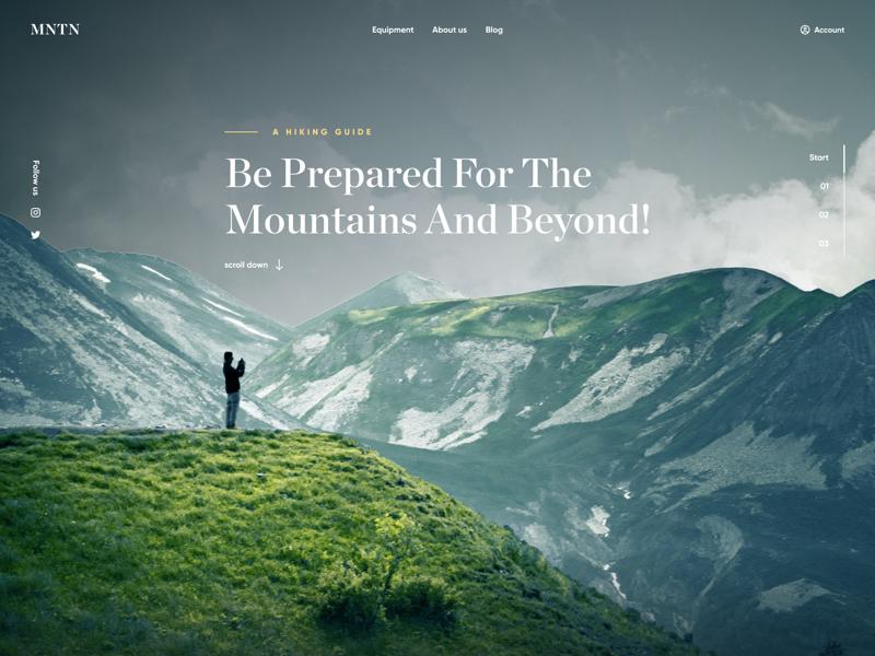 Minimal and clean landing page design for a blog about hiking and traveling.