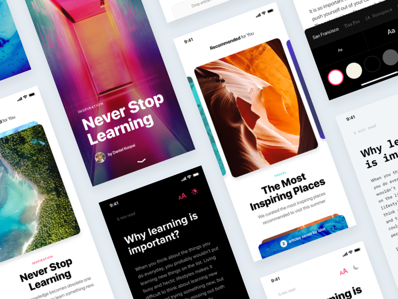 This concept shows a daily digest view of a news app. Designed by Daniel Korpai