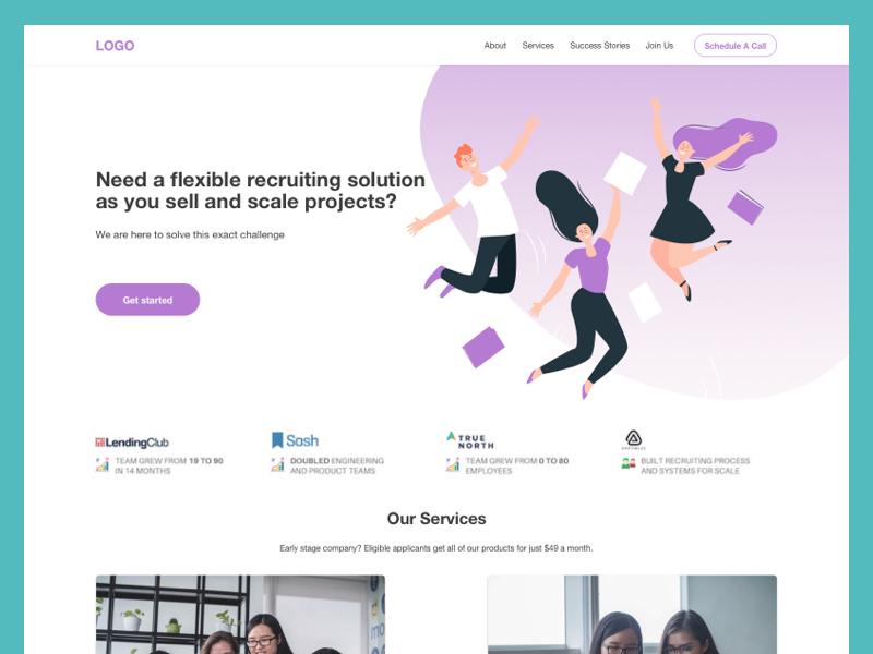 Elegant and clean landing page design for Recruitment services. Modern & clean look.