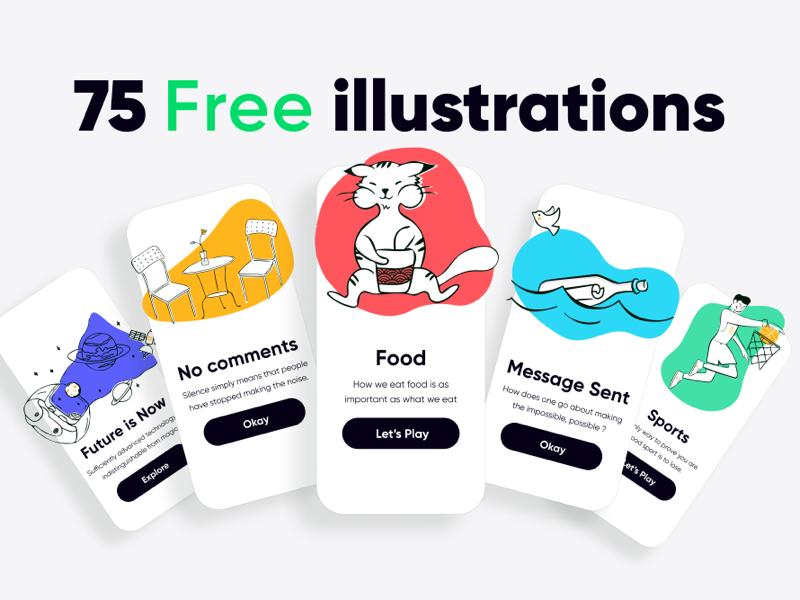 75 free illustrations library for your design/product. Want to give your brands color, just change the background color? Its that easy