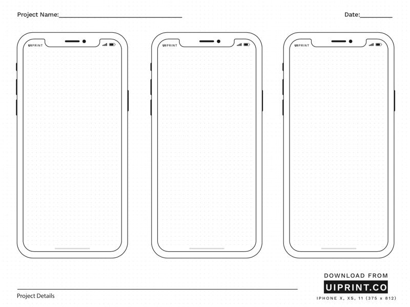 Collection of printable wireframe, mockup and dot grid sketchpad templates. All mobile mocks are mapped with original iPhone X, XS, 11Pro Screen size. You can download all templates in both A4 and Letter Size.