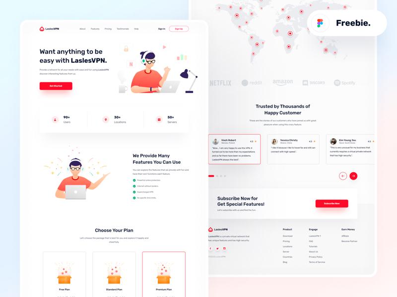 Elegant and clean landing page design for VPN services. Modern & clean look.